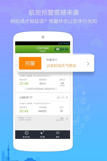 提供航班延误、取消等预警,让您提前知晓变化。