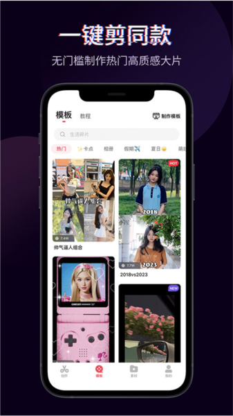 2、一键剪同款:智能匹配模板,轻松制作同款视频。