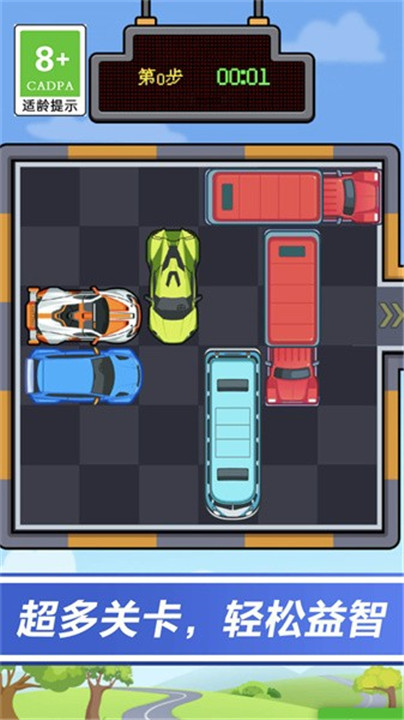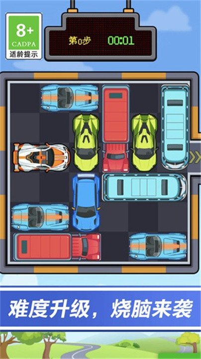 2、难度也会不断升级,开动脑筋,重现完美停车场。