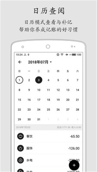 2、日历查阅:通过日历查看和管理每一天的收支记录,清晰明了。