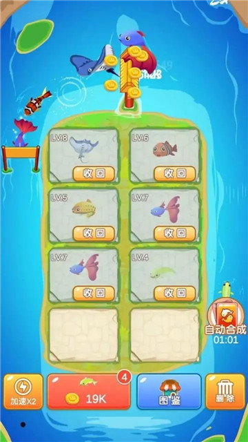 下载家园合成是一款卡通休闲合成小游戏,在游戏中,每一只生物的合成都是一笔不小的收入,合成一只动物,让自己的价值最大化,而且还能随时接取宠物任务,赚取金钱,这一切都是手到擒来,体验最轻松,最自由的赚钱方法。