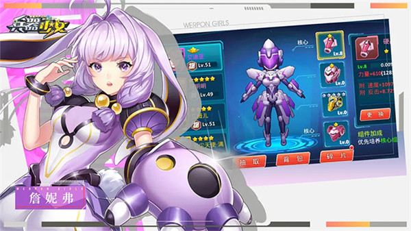 游戏的兵器少女角色设计非常独特,将传统的武器与美少女元素结合,展现出丰富的个性和视觉魅力。精美的立绘和清新明亮的轻科幻画风,为玩家提供了一种与众不同的视觉体验。