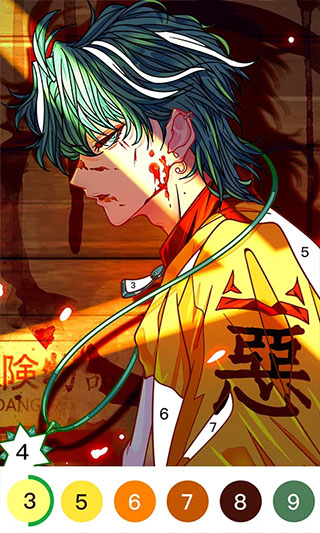 3、进入具体的画作后,游戏界面的下方会显示各种颜色选项。每种颜色都对应着图中的数字区域。只需选择相应的颜色,然后点击对应的区域,即可一秒完成上色。这个简单而直观的操作,轻松享受填色的乐趣。