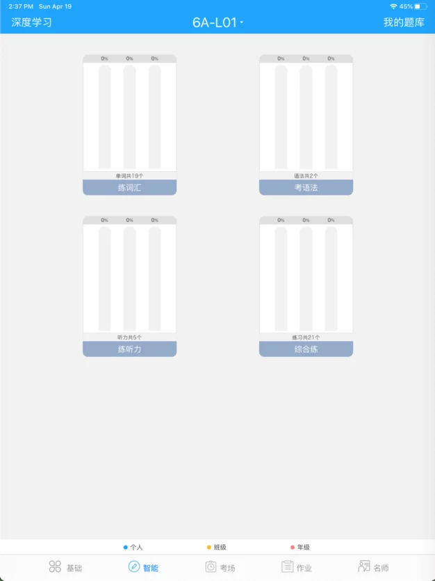 3、点击智能按键,进行英语的视听说练习,并积累词汇。