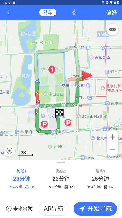 5、选择地址后,单击“开始导航”按钮,导航犬将为你规划最佳路线并开始提供实时导航指引。