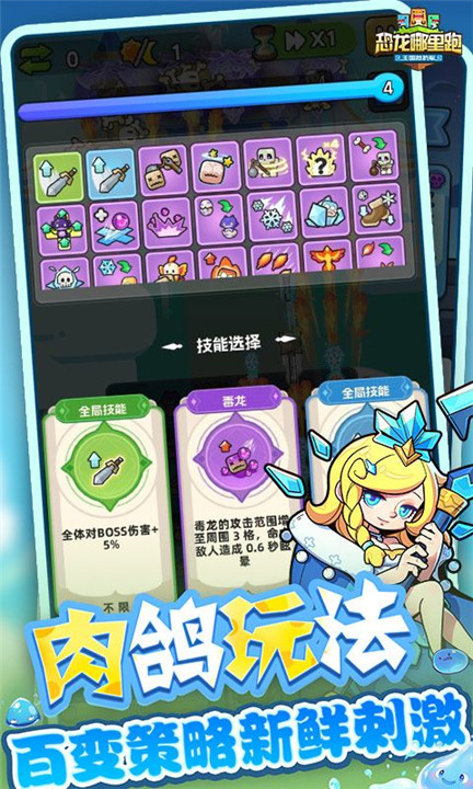 游戏中的技能选择系统具有Roguelike元素,每次通过消除合成或击败怪物积累经验后,都会随机刷新技能供玩家选择,这种不确定性增加了游戏的重玩价值,使每次的游戏体验都不尽相同。