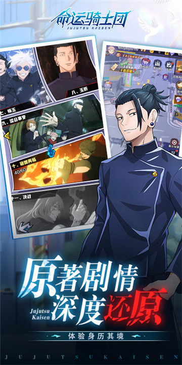 下载命运骑士团手游是日系策略卡牌手游,核心以新领域咒术为主题。命运骑士团手游安卓中文版下载不仅保留了原作中的经典剧情和场景,还为玩家带来了收集各种性格独特的咒术师的机会。命运骑士团下载手机安卓版安装的玩家可以招募如五条悟、虎杖悠仁、乙骨忧太、夏油杰、禅院直毘人等知名咒术师,组建强力阵容。通过巧妙地搭配咒术师的特性与技能,玩家能够运用攻击、防御、控制等多样的策略布局,迎战咒灵,享受极富策略性的战斗体验。