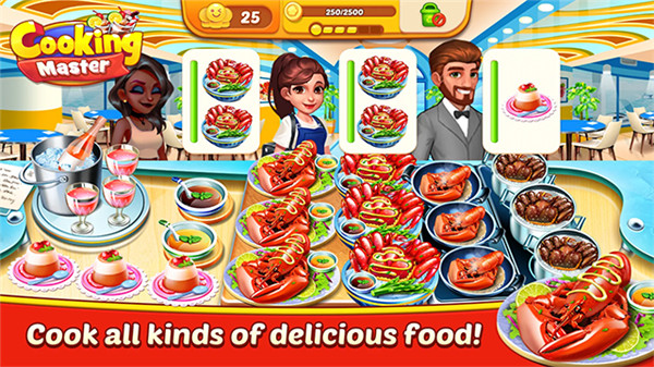烹饪大师餐厅又名Cooking MasterRestaurant Game,是款餐厅美食烹饪手游。餐厅烹饪大师(CookingMasterRestaurantGame)手游安卓版下载中,你将可以升级多种厨房设备,包括油炸锅、搅拌器和平底锅等,烹制各类饮品、水果、蔬菜和烧烤等美食,满足各类顾客的口味偏好并不断提升餐厅的声誉。为了吸引更多的顾客,餐厅烹饪大师下载手机最新版的玩家不仅要提高烹饪效率,还需掌握快速点餐的技巧,避免顾客因等待时间过长而离开。不同顾客会提出不同的需求,而你的目标就是准确地为他们提供可口的餐点,赚取金币和钻石,用于升级厨房设施,加快服务节奏。