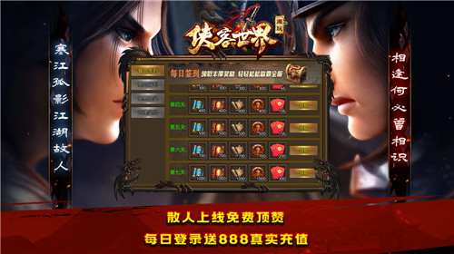下载湘玩侠客世界是一款全新的热血传奇,游戏采用独具特色的江湖题材为主,一场全新的传奇世界等你开启,超多丰富的玩法尽情解锁,随时都有刺激的战斗可以感受。只要你有时间,各种装备和武器都可以白嫖。