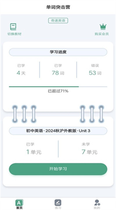 3. 进入首页后,选择你要使用的教材,开始你的学习规划。