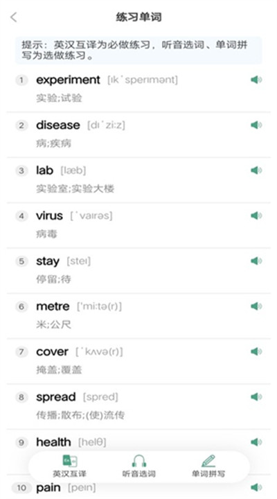 3. 支持拼写、发音、听力等多种训练方式,让学习不单调,效率更高。