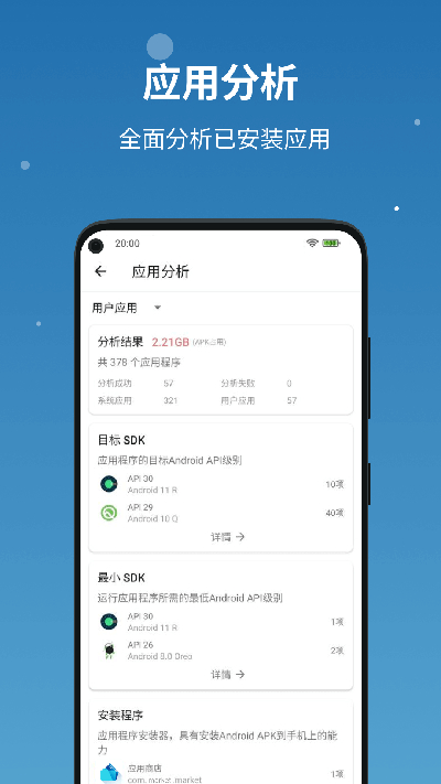 1、全面分析已安装应用:能分析设备上已安装的应用,查看每个应用占用的存储空间,帮助用户优化存储管理。