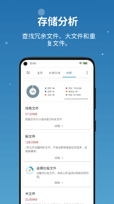 2、存储分析:在存储分析功能中,您可以查看手机中哪些文件占用了存储空间,帮助您及时清理不必要的文件,从而优化手机存储。