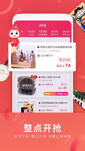 4、整点开抢:每天定时推出限时抢购活动,用户可以在特定时间内以超低价格购买商品。