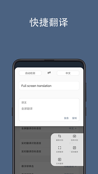 1、全屏翻译:支持对整个屏幕内容进行翻译,用户可以轻松翻译任何应用中的文字,无需手动输入。