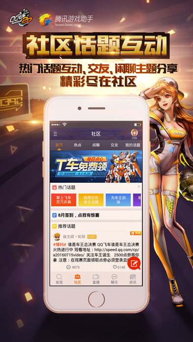 为QQ飞车手游玩家提供资讯、活动、聊天等功能,便于获取最新动态与互动。