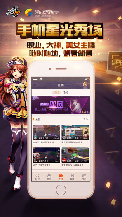 随时观看职业玩家、大佬和美女主播的直播,享受丰富的娱乐内容。