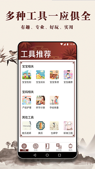 2、在“工具”板块中,用户可以找到与宝宝、宝妈等相关的多种工具,帮助用户进行取名相关的辅助操作。