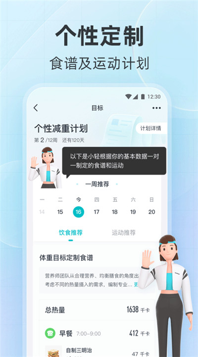 1. 记录体重并生成变化趋势,帮助用户追踪减肥进度。