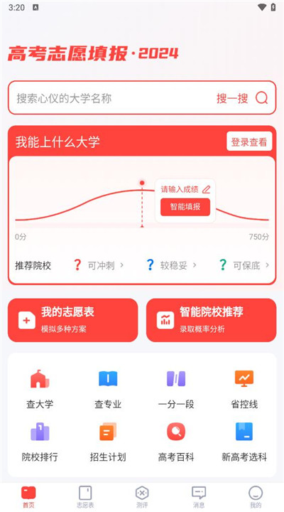 2. 提供专业测评功能,帮助考生根据兴趣和成绩选择合适专业。