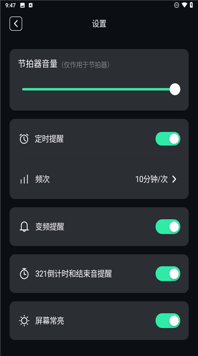 3. 向右滑动切换仿真节奏器,向左滑动切换仿真节拍器,轻松调整模式。