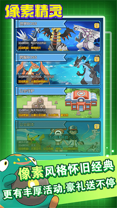 游戏采用宝可梦为主题,玩家可以培养自己喜爱的精灵,并与它们一起冒险,唤起了玩家的怀旧情怀。