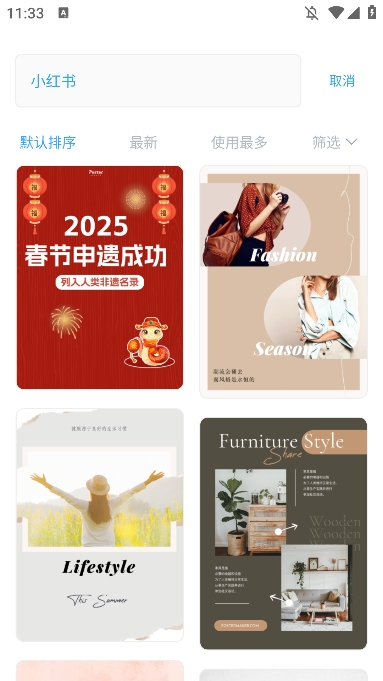 1、在首页的搜索栏输入想要的海报类型,选择喜欢的模板进入。