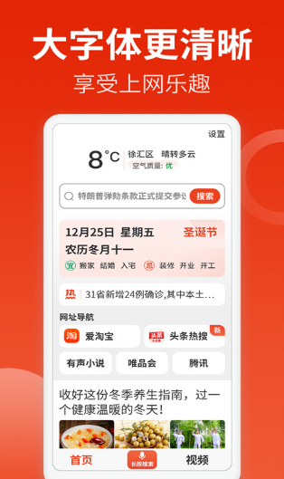3、大字体设计:字体放大,文字更加清晰,减少视觉负担,让浏览体验更舒适。