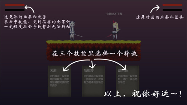 游戏操作非常简洁,玩家只需要根据血条和精力条来判断合适的招式,不需要复杂的操作,非常适合轻松娱乐。