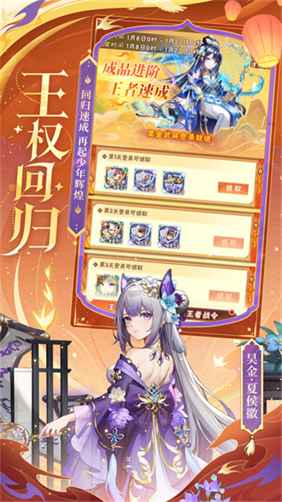 游戏中有丰富的卡牌系统,玩家可以通过抽卡、任务、活动等多种途径获得卡牌,收集自己喜爱的武将,并根据需要组合成最强的队伍。卡牌系统的设计既有挑战性,也充满乐趣,吸引玩家不断探索和尝试。