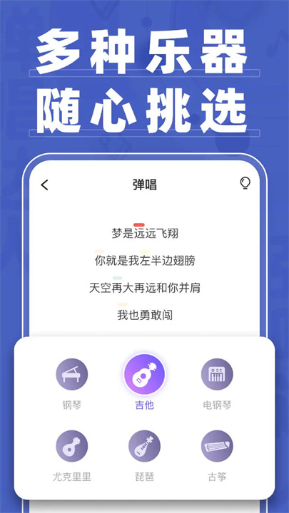 支持多种主流乐器,如吉他、钢琴、尤克里里等。未来还将持续新增其他乐器类型,满足更多用户的演奏需求。