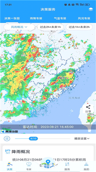 1.覆盖福建省内省、市、县级全面的气象预警信息,为用户送上贴心实用的防御指南