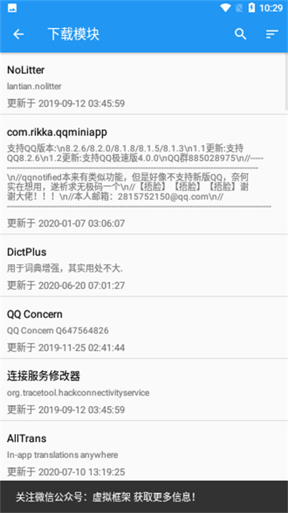 在太极主界面,可以直接下载官方推荐模块,或通过虚拟框架的公众号获取模块apk。