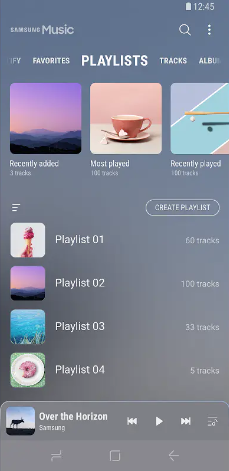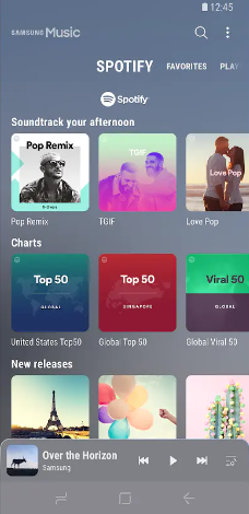 -samsung music显示了Spotify的播放列表推荐。您可以通过Spotify标签找到Spotify推荐音乐,并搜索您喜欢的Spotify音乐。