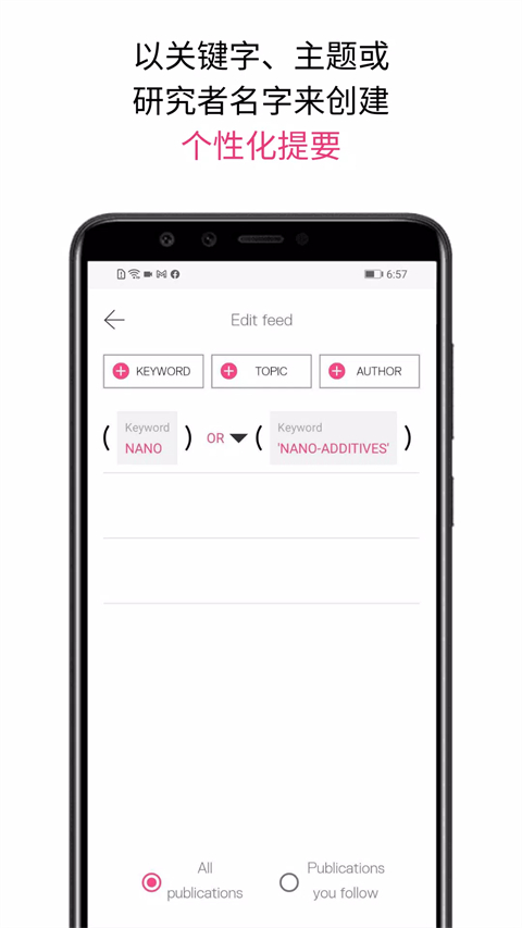 4、设置关键字或作者订阅源,轻松发现与您研究相关的内容。