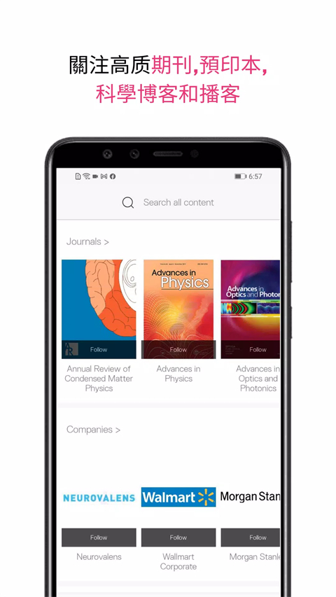 用户可以轻松关注各类高质量期刊、预印本以及科学博客和播客,随时获取最新的学术动态。