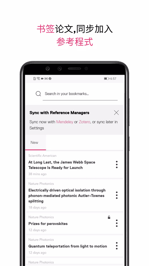 用户可以将感兴趣的论文添加到书签中,并与其他参考资料同步,方便后续查阅和引用。