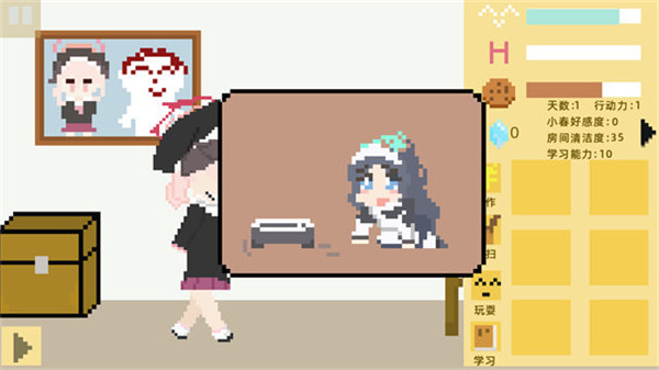 3. 清洁卫生能提高房间的整洁度,保持良好的环境有助于防止小春的心情值快速下降哦。