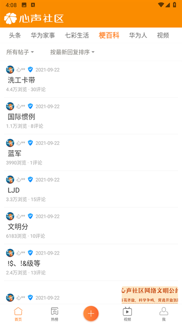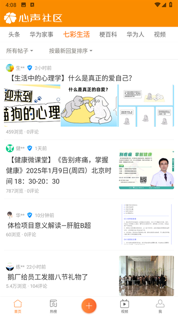 2、多版块设置:社区有多个版块,如华为人、兴趣、健康和爱心等,用户可参与公益活动和查看热门帖子。