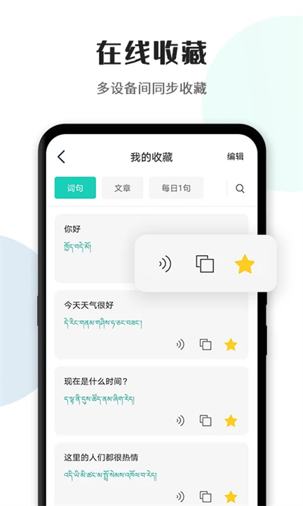 每个短语都配有发音示范,一键播放,帮助你熟悉藏语表达。