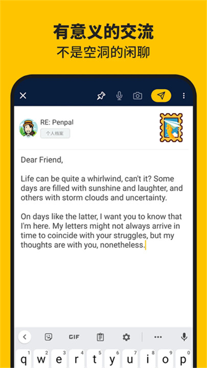 通过设置个人兴趣、语言、话题偏好以及年龄范围,Slowly能够智能地为您匹配最适合的笔友,确保您与对方有更多的共同话题和兴趣,增强交流的深度和趣味。