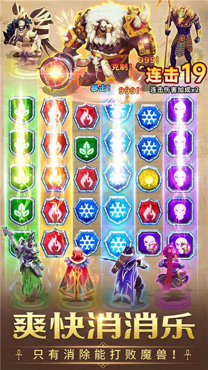 1.创新三消与卡牌结合:突破传统三消玩法,加入英雄卡牌与属性克制系统,带来更多策略性。