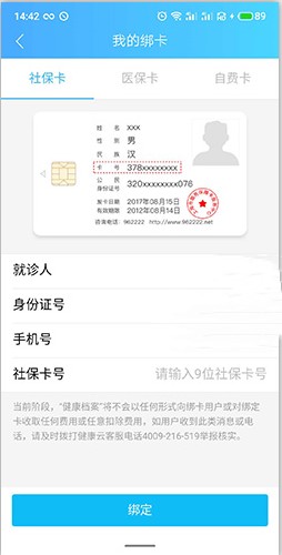 3、选择绑定社保卡、医保卡或自费卡,完成绑定即可使用。