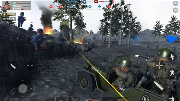 5、在战场上,如果遇到敌方的炮车,点击“上车”按钮,你可以驾驶炮车并进行射击,增加攻击力。