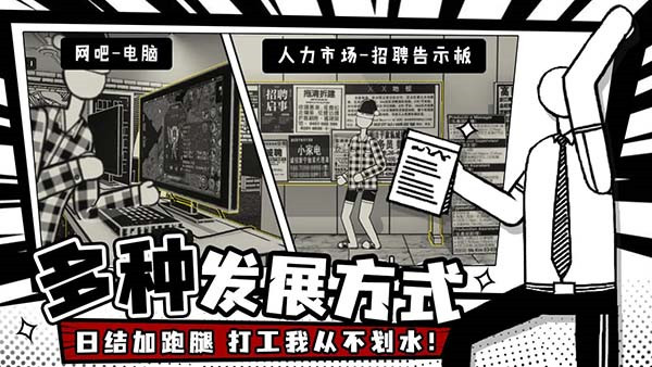 游戏中的人力市场提供了各种打工小游戏,每种工作有不同的耗时、难度和报酬。务必仔细选择适合自己的任务。如果去得太晚,可能就错过了高报酬的日结工作。