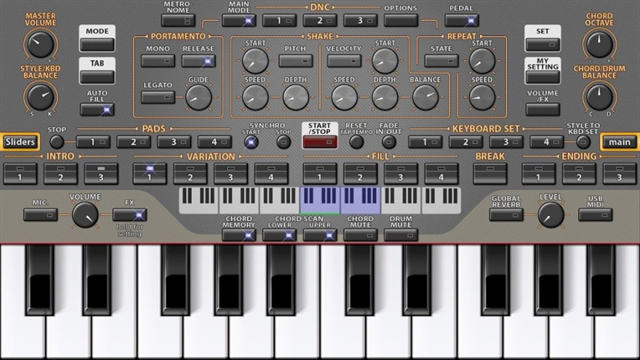 4、使用虚拟键盘弹奏音符和和弦,或通过MIDI连接外部键盘。