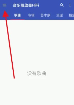 1、打开音乐播放器hifi,点击左上角的菜单栏图标。