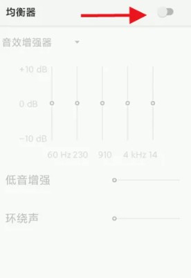 4、在均衡器界面,开启均衡器,并根据个人喜好调整音效参数。