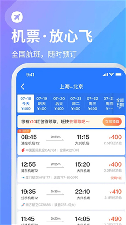 3.国内航班在线预订,机票价格透明公开,7*24小时售后服务有保障