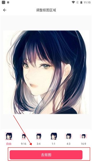 3、选定图片后,挑选你喜欢的图片样式,单击底部“去抠图”开始处理。